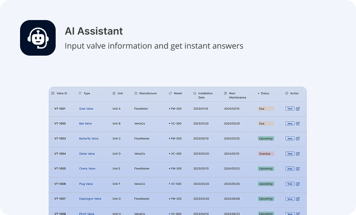 Unleash AI-driven tools to track valves, streamline maintenance, and access expert insights—